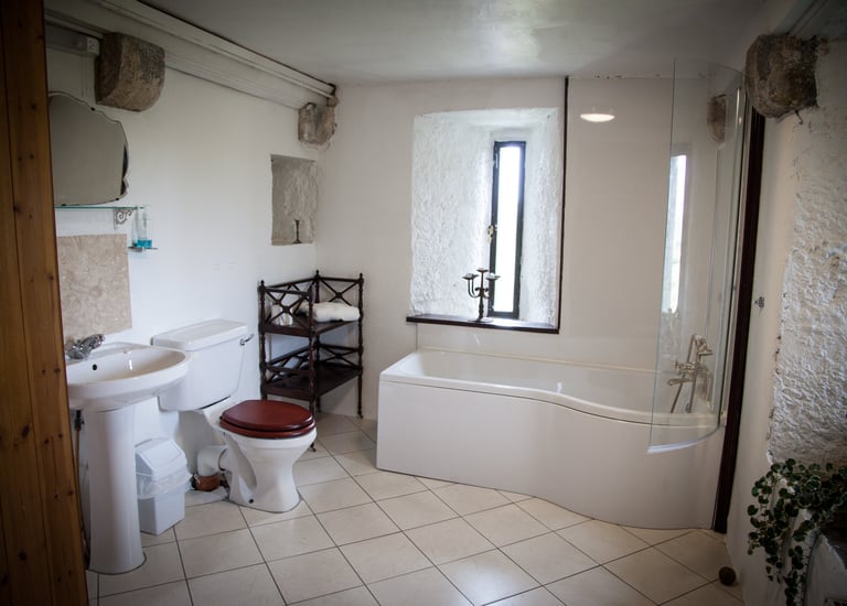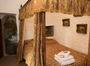 Inside Ballynagowan Castle, historic architecture meets modern comfort. The rooms are arranged along the original spiral staircase, creating a unique medieval layout while offering all the essentials for a comfortable stay.