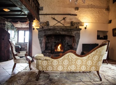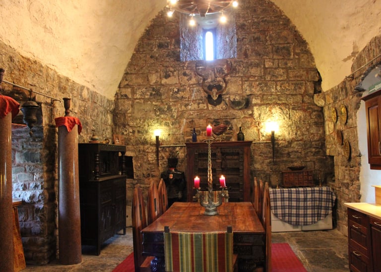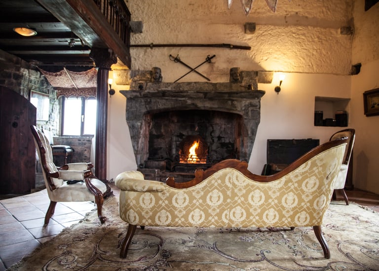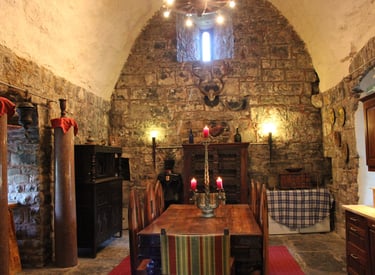 The Great Hall forms the heart of the castle. With its impressive original Gothic fireplace and centuries-old stone walls, it offers a warm and atmospheric space to relax after a day exploring the surrounding countryside.