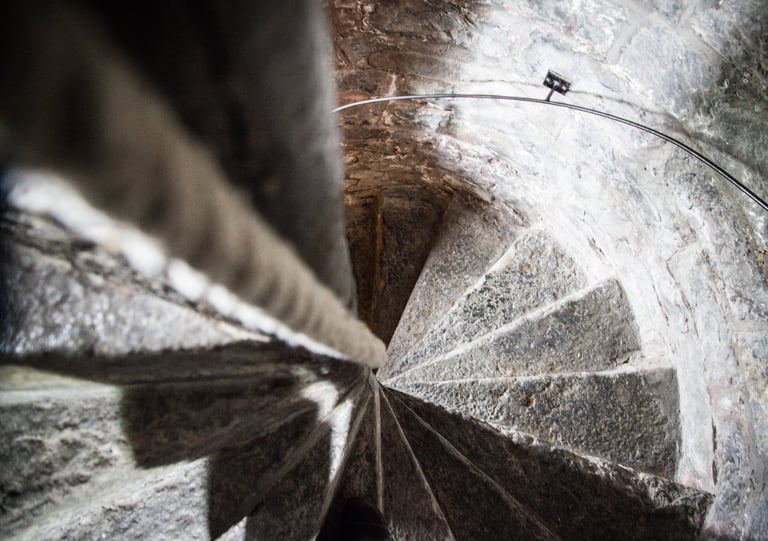 An original spiral staircase runs through the entire castle, connecting each level from top to bottom. It remains one of the few surviving examples of its kind in the region.